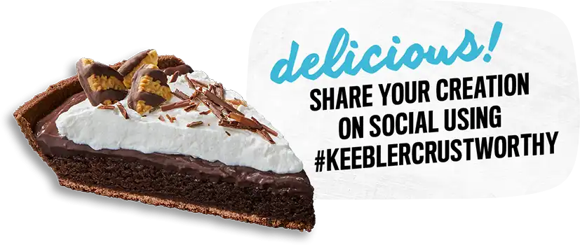 A layer of decadent milk chocolate brownie baked in a Keebler® Ready Crust® Chocolate Pie Crust, topped with rich chocolate pudding and whipped topping, then finished with a dusting of cocoa powder, chocolate shavings and Fudge Stripes™ Original cookies.